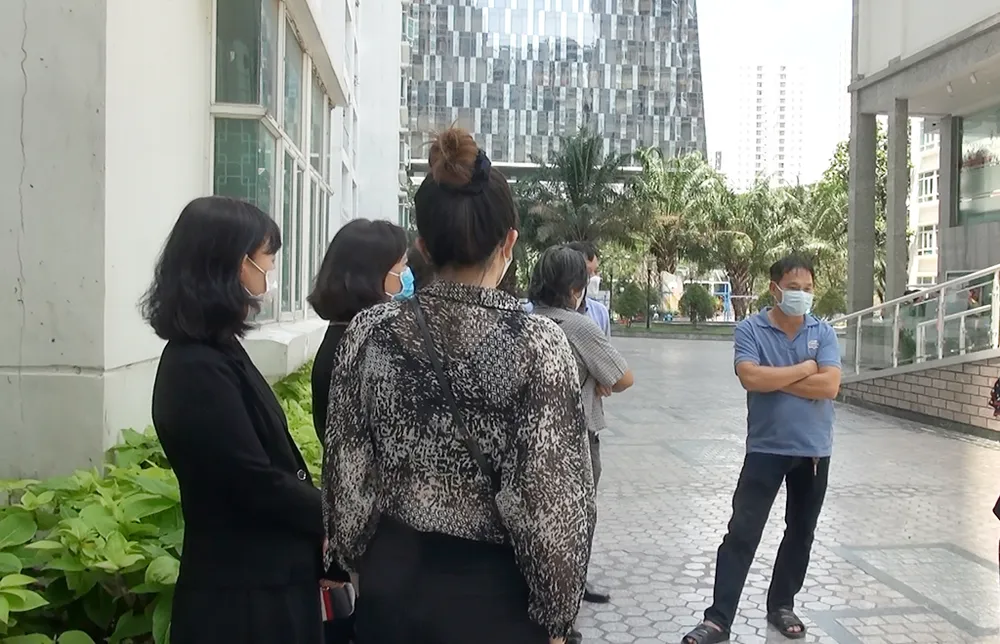 Gia đình của TS Tín cũng có mặt tại chung cư. Một người cho biết được mời tới chứng kiến việc thực nghiệm. Ảnh: NT