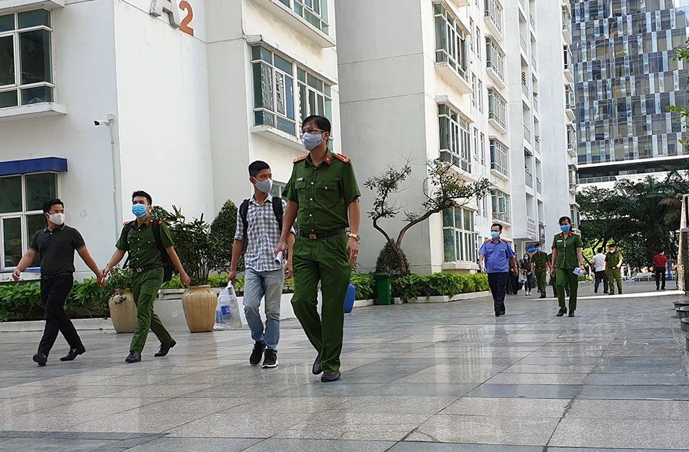 Công an và các bảo vệ chung cư yêu cầu các phóng viên tại khu vực không được phép ghi hình, quay phim.