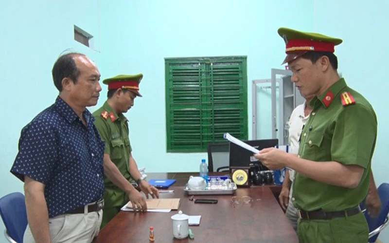 Công bố lệnh bắt tạm giam đối với Phan Văn Xáo, cựu Phó giám đốc Chi nhánh Văn phòng đăng ký đất đai thị xã Đông Hòa. Ảnh: ĐẶNG HUY