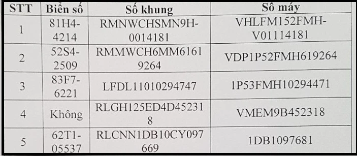 Cơ quan CSĐT Công an quận 4 thông báo ai là chủ sở hữu những xe máy có đặc điểm như trên đề nghị liên hệ Đội Điều tra tổng hợp - Công an quận 4 (địa chỉ: 14 Đoàn Như Hài, phường 12, quận 4), gặp anh Trần Hoàng Long (SĐT: 02839402042) để giải quyết.