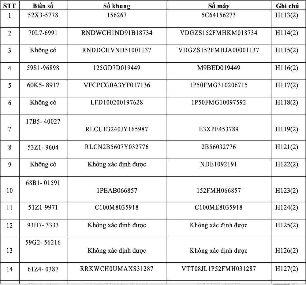 Sau 30 ngày kể từ ngày đăng báo, nếu không ai liên hệ nhận các xe gắn máy trên Công an quận 4 sẽ làm thủ tục tịch thu, sung công quỹ nhà nước theo quy định pháp luật.