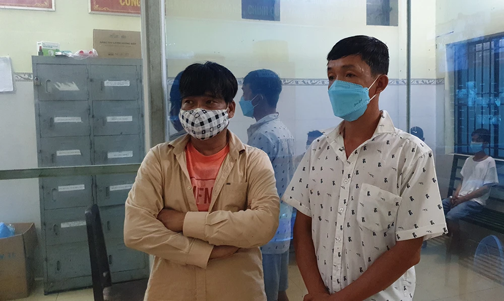 Tới (bên phải) và Hậu tại cơ quan điều tra. Ảnh NT