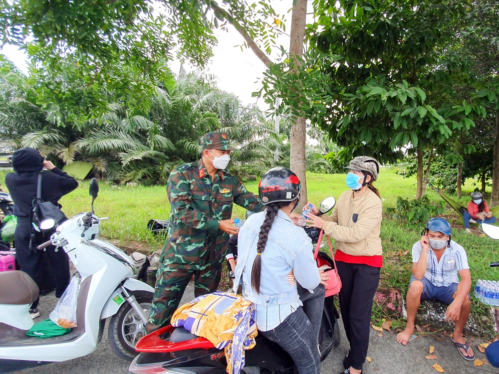Một người dân chia sẻ: “Một chai nước lúc này quý lắm, trên đường có ai bán gì đâu, lúc rời khỏi TP.HCM chúng tôi có mang theo nhưng đã dùng hết”.