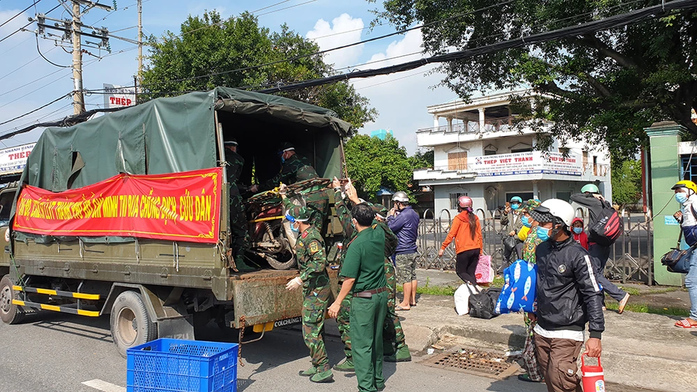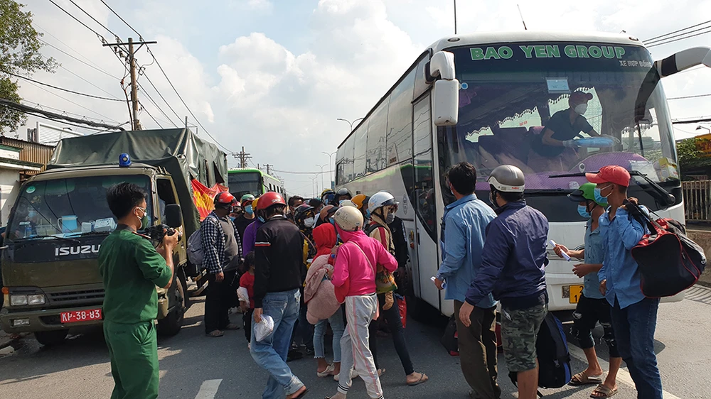 Đến trưa ngày 1-10, lực lượng chức năng gồm nhiều đơn vị ở TP.HCM cùng phối hợp, tổ chức đưa hàng ngàn người dân “mắc kẹt” ở khu vực giáp ranh giữa TP.HCM và tỉnh Long An về quê.