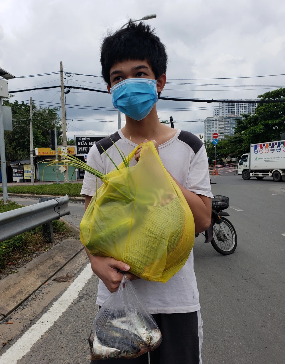 Theo Công an phường Tam Bình, trong sáng cùng ngày lực lượng địa phương đã phát hơn 500 phần thực phẩm thiết yếu cho người dân.