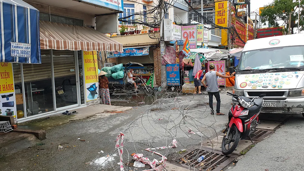 Trong khi đó, một số khu vực ở quận Gò Vấp các hàng rào cố định vẫn chưa được tháo dỡ. Ảnh NT