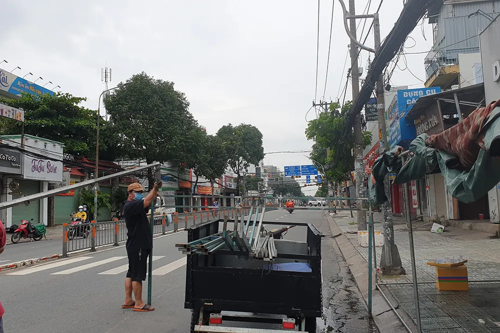 Trưa cùng ngày, lực lượng chức năng quận Tân Bình đã triển khai tháo dỡ chốt. Ảnh NT