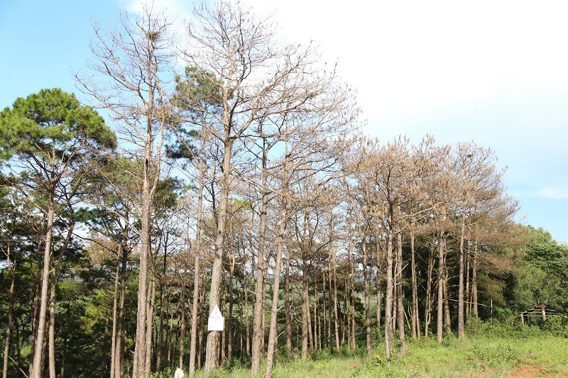 Rừng thông bị đầu độc. Ảnh: HUY TRƯỜNG