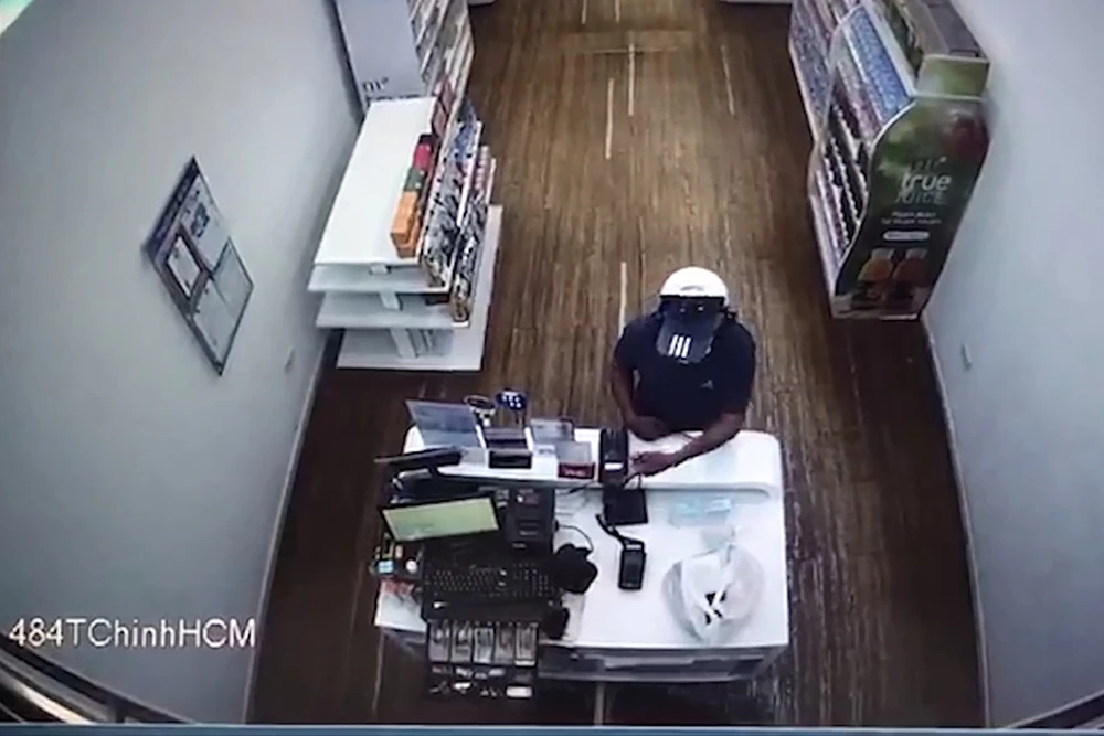 Vụ cướp mới nhất mà người này thực hiện là tại cửa hàng sữa trên đường Cộng Hòa. Ảnh chụp từ clip