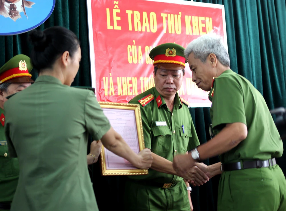Phó Giám đốc Công an TP.HCM đã trao thư khen cùng phần thưởng nóng cho Công an quận Tân Phú. Ảnh: Nguyễn Tân