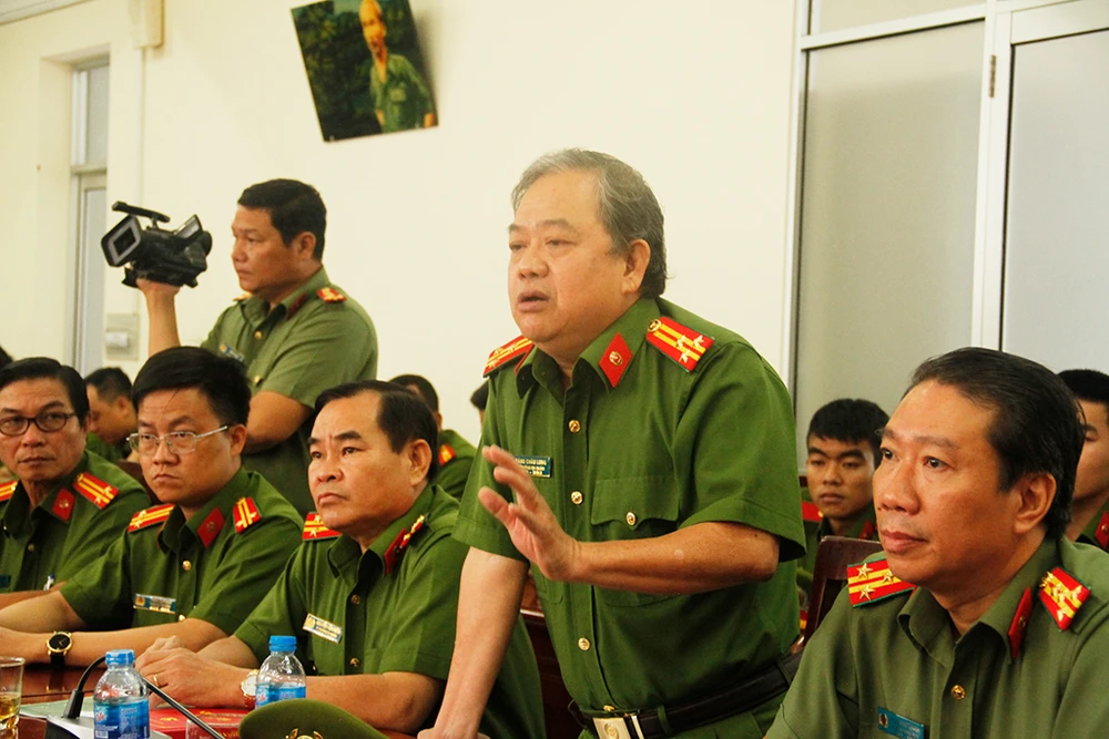 Thiếu tướng Phan Anh Minh, Phó Giám đốc Công an TP.HCM, đánh giá cao thành tích mà Công an quận Tân Phú đạt được. Ảnh: Nguyễn Tân