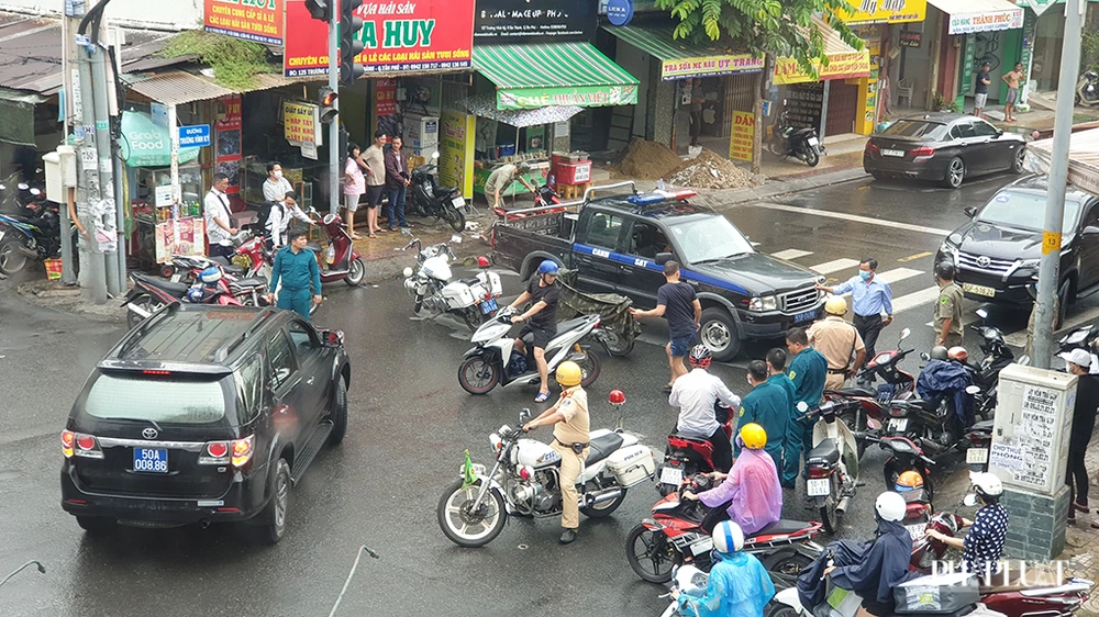 Đại tá Nguyễn Đăng Nam, Trưởng Phòng cảnh sát hình sự, Công an TP.HCM cũng có mặt tại hiện trường cùng lãnh đạo Công an TP.HCM để phối hợp điều tra truy xét.