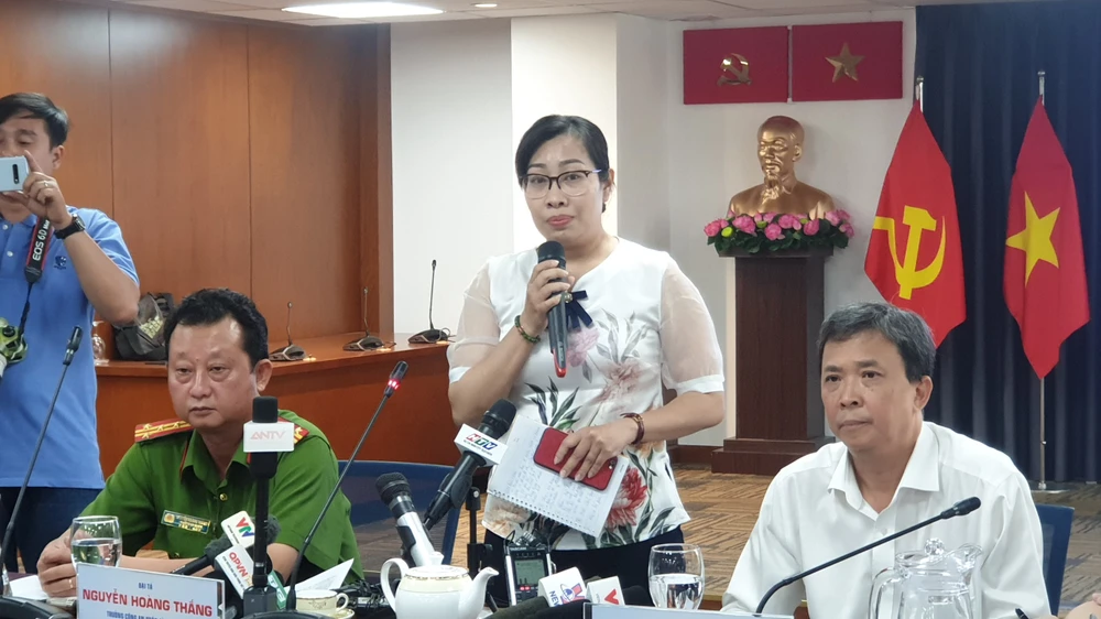 Ông Trần Ngọc Sơn, Phó Giám đốc Sở Lao động xã hội, phân công bà Nguyễn Thành Phụng, Trưởng phòng Bảo trợ xã hội Sở LĐ-TB&XH, trả lời tại cuộc họp báo.
