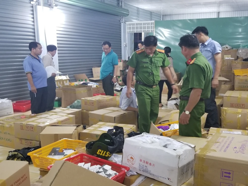 Công an kinh tế, quản lý thị trường, Thanh tra Sở Y tế tỉnh Cà Mau vào khám kho hàng của N-Collagen. Ảnh: Tống Giang