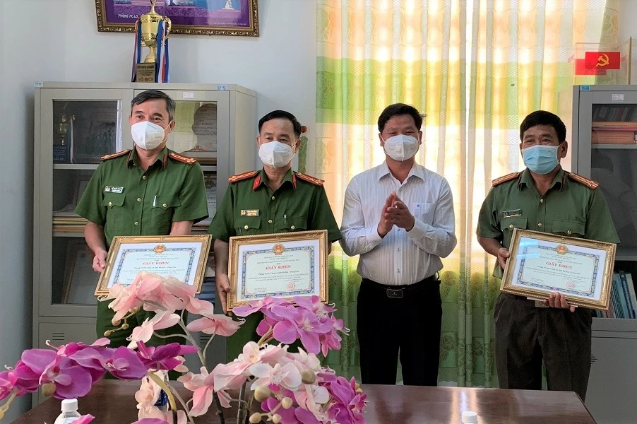 Khen thưởng cá nhân công an huyện Châu Đức, xã Kim Long tham gia phá án. Ảnh: ĐT