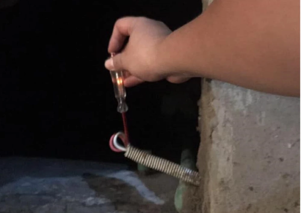 Hai đầu dây có điện tại bể nước ngầm của gia đình nạn nhân.