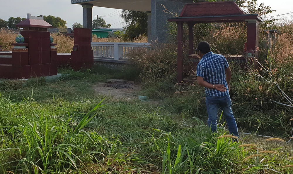 Hiện trường phát hiện vụ đốt xương người được phát hiện ở nghĩa địa ven đường. Ảnh: NT