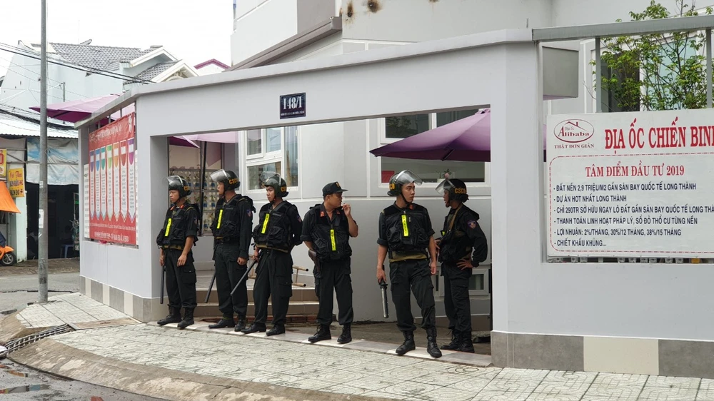 Cảnh sát cơ động phong tỏa trước cổng chi nhánh công ty. Ảnh: TÂN-YÊN