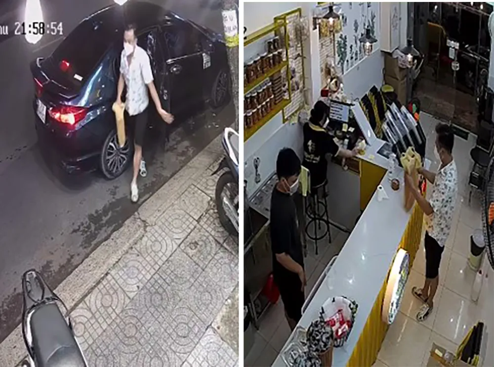 Tâm thực hiện hành vi lừa giao yến ở một cửa hàng tại địa bàn quận 7. Ảnh chụp từ clip camera an ninh