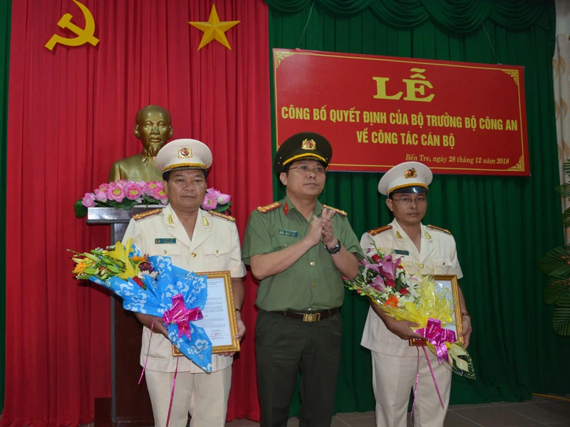 Chiều 28-12, Công an tỉnh Bến Tre đã tổ chức lễ công bố quyết định của bộ trưởng Bộ Công an về việc bổ nhiệm hai phó giám đốc Công an tỉnh Bến Tre.