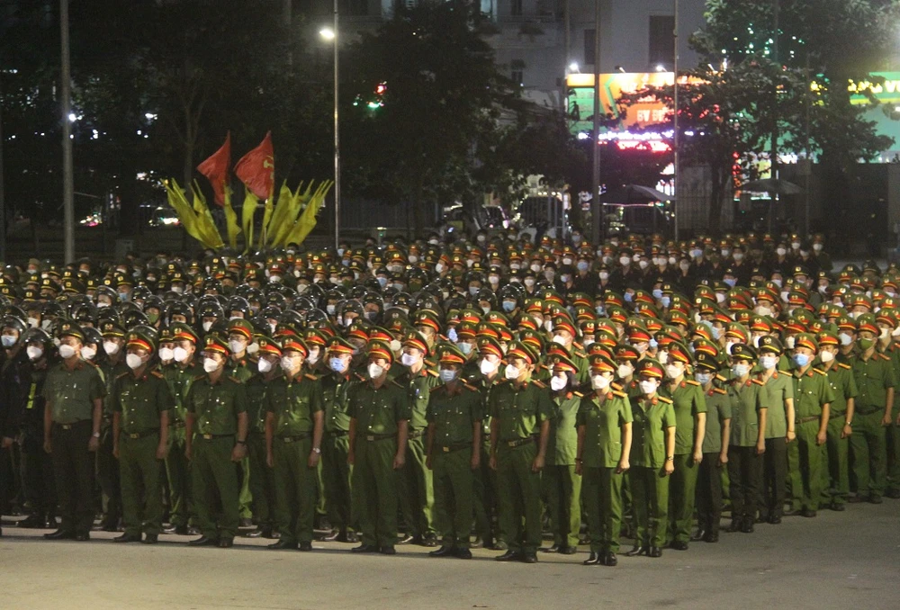 Lực lượng trong buổi lễ ra quân tấn công trấn áp tội phạm. Ảnh: VŨ HỘI