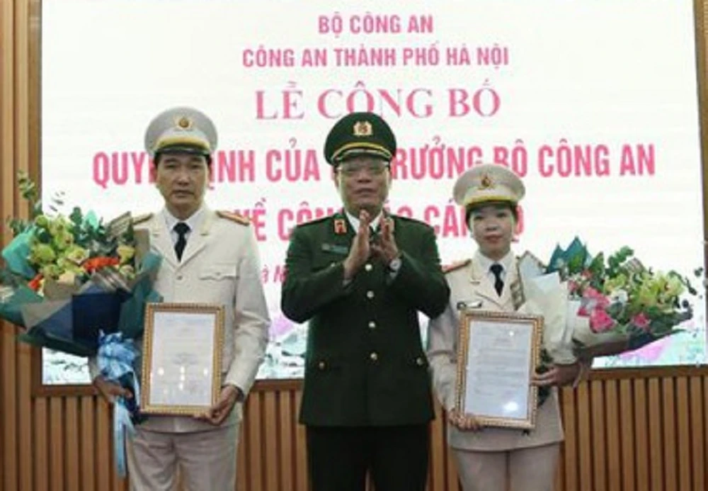 Giám đốc Công an TP Hà Nội trao quyết định bổ nhiệm hai tân trưởng phòng. Ảnh: ANTĐ