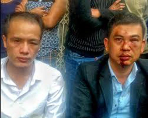 Luật sư Nam (phải) và luật sư Luân sau vụ hành hung.