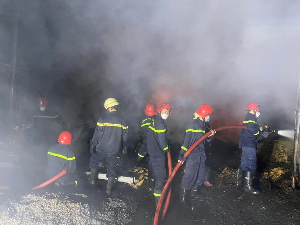 Thời điểm xảy ra cháy nhà xưởng đỏ rục ngọn lửa, cột khói đen bốc cao hàng chục mét. Theo người dân chứng kiến, thời điểm cháy có nhiều tiếng nổ lớn phát ra, ngọn lửa bốc lên hừng hực, đỏ cả một vùng trời.