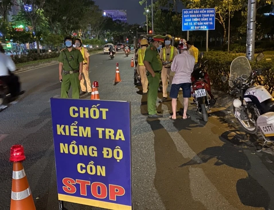 Công an TP Thủ Đức xử lý vi phạm giao thông trong dịp cao điểm Tết nguyên đán. Ảnh: CM