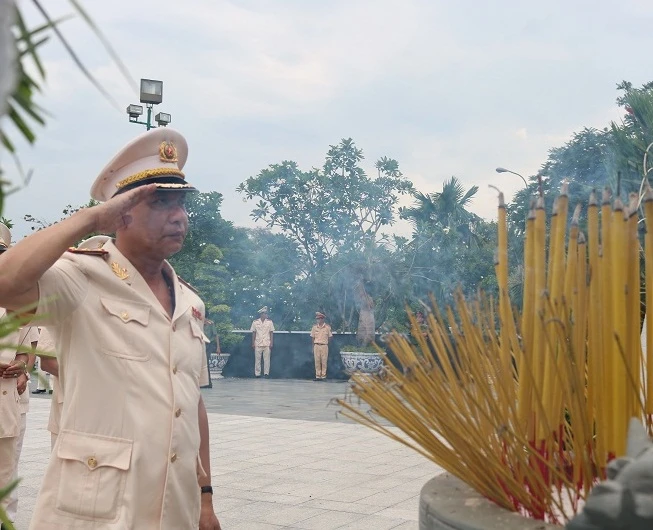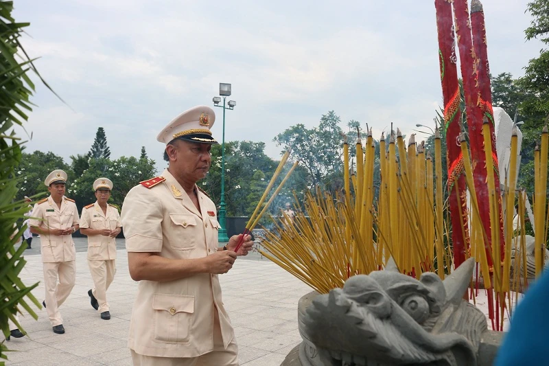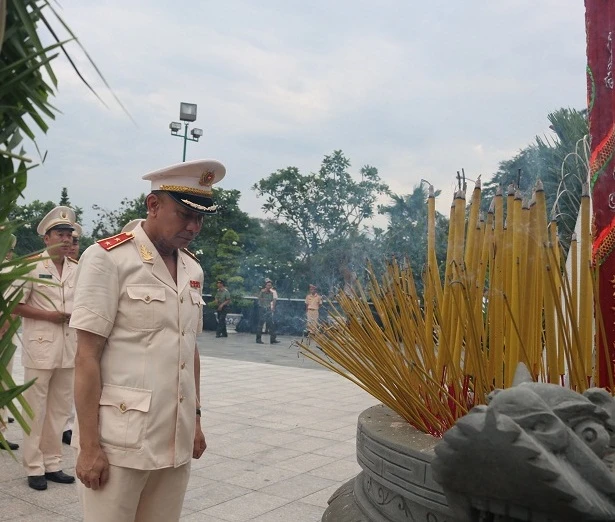 Trung tướng Lê Đông Phong, Giám đốc Công an TP.HCM, dâng hương bày tỏ lòng thành kính với các anh hùng liệt sĩ. Ảnh: THANH TUYỀN