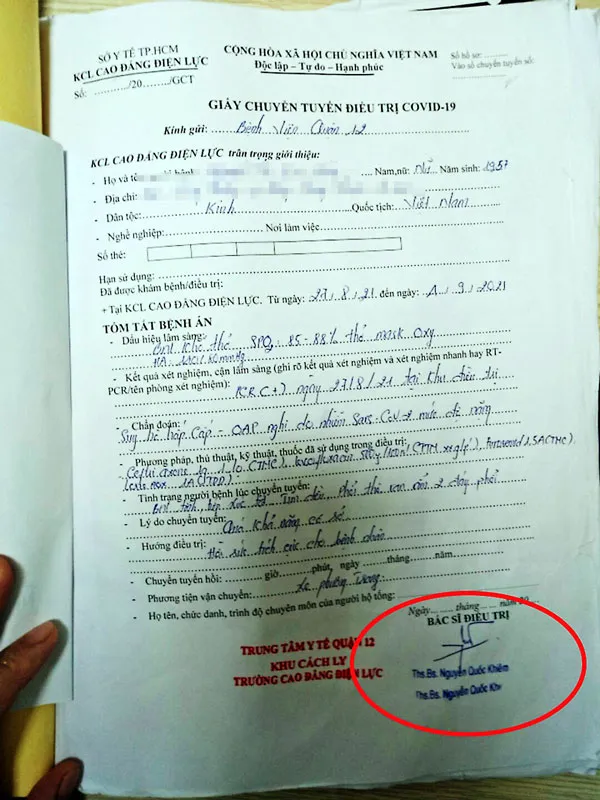 Giấy chuyển viện do bác sĩ giả Nguyễn Quốc Khiêm ký. Ảnh: NT
