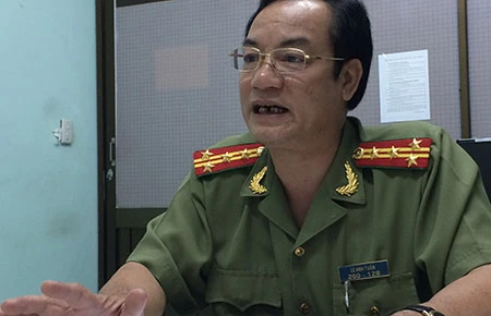 Đại tá Lê Anh Tuấn, Chánh Văn phòng Công an TP.HCM, trao đổi về vụ khám xét tiệm vàng Hoàng Mai. Ảnh: A.NHÂN