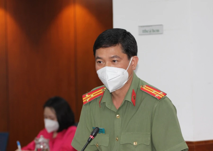Thượng tá Lê Mạnh Hà, Phó phòng Tham mưu Công an TP.HCM, thông tin tại họp báo. Ảnh: TÁ LÂM