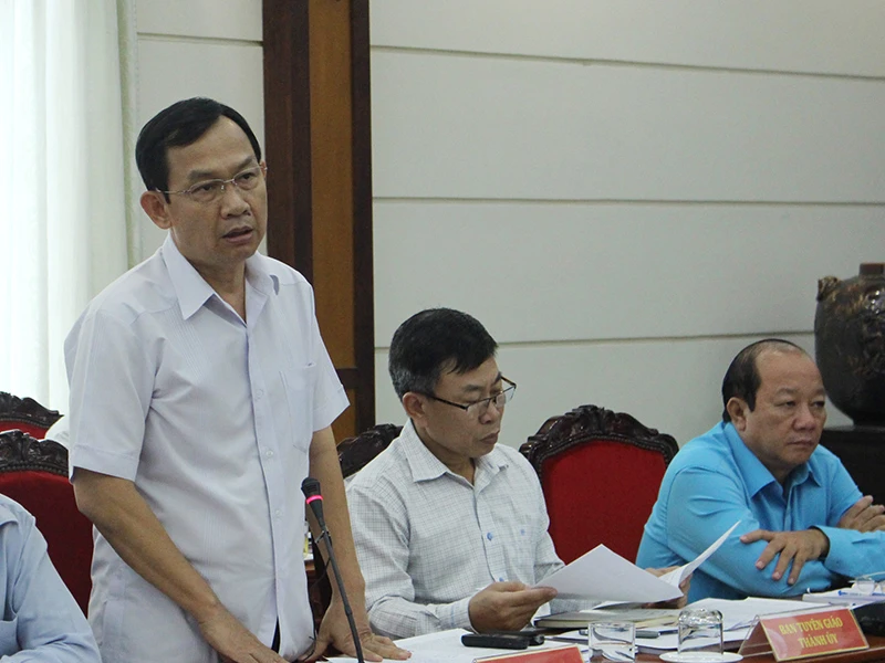 Đại tá Đinh Thanh Nhàn, Phó Giám đốc Công an TP.HCM, tại buổi làm việc. Ảnh: LÊ THOA
