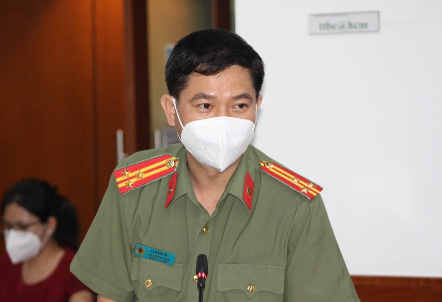 Thượng tá Lê Mạnh Hà, Phó Phòng Tham mưu Công an TP.HCM trả lời câu hỏi về việc cấp giấy đi đường. Ảnh: TÁ LÂM