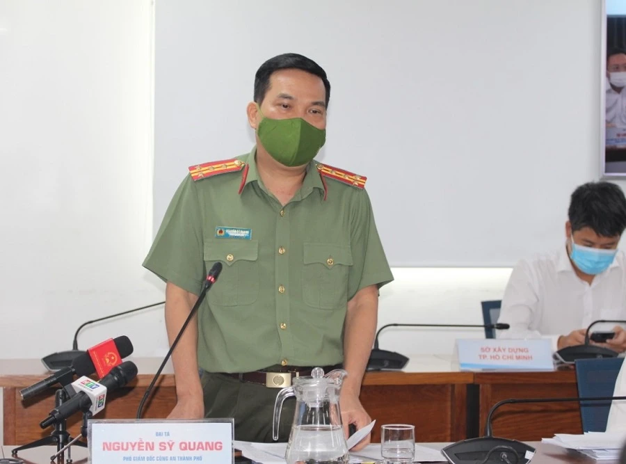 Đại tá Nguyễn Sỹ Quang, Phó Giám đốc Công an TP.HCM trả lời tại họp báo. Ảnh: TÁ LÂM