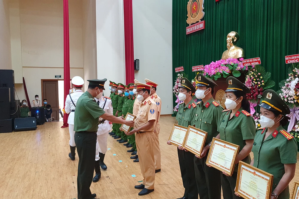Công an TP.HCM cũng khen thưởng các tập thể, cá nhân có thành tích xuất sắc trong công tác phòng chống dịch COVID-19. Ảnh: NT