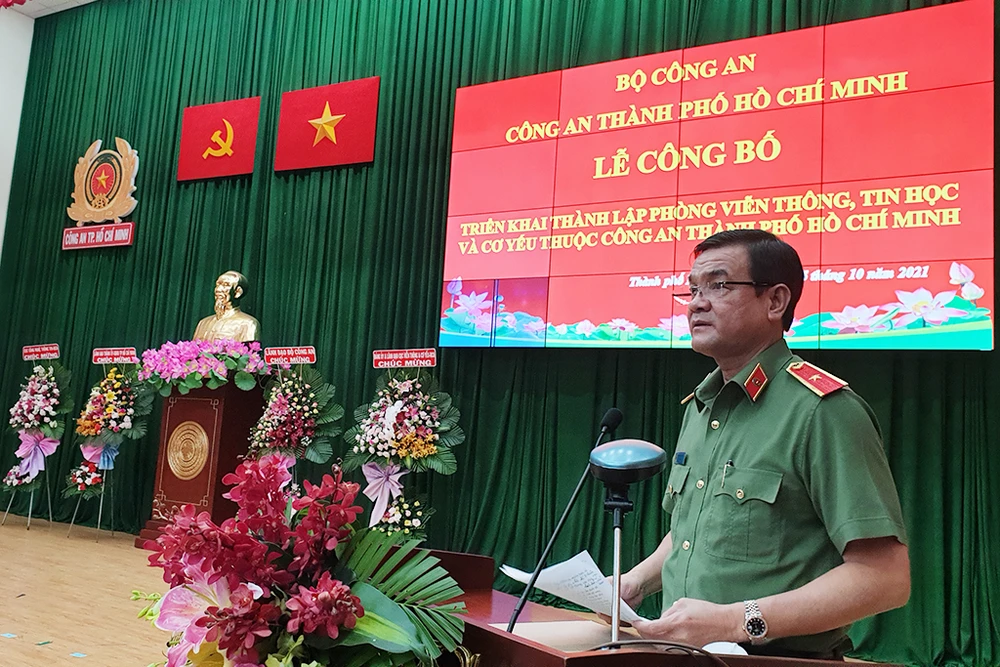 Sáng 5-10, Công an TP.HCM tổ chức buổi lễ công bố Quyết định của Bộ trưởng Bộ Công an về việc thành lập Phòng Viễn thông, Tin học và Cơ yếu (PH04), trực thuộc Công an TP.HCM.