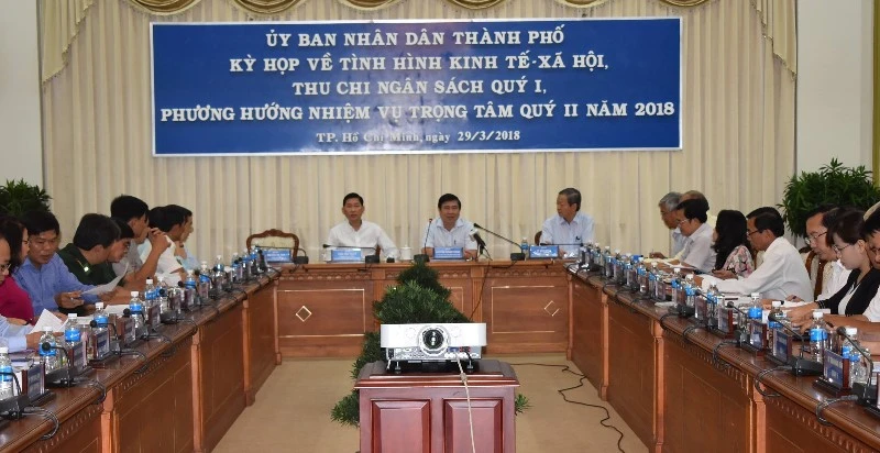 Giới thiệu chương trình làm việc, Chánh Văn phòng UBND TP Võ Văn Hoan cho biết, ngay sau cuộc họp kinh tế - xã hội, vào lúc 11 giờ trưa nay, 29-3, UBND TP.HCM sẽ tổ chức cuộc họp báo về tình hình kinh tế - xã hội với sự tham dự của nhiều lãnh đạo các sở ngành trên địa bàn.