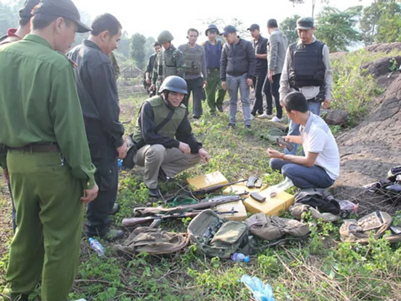 Súng đạn và ma túy công an thu giữ sau cuộc đấu súng với băng nhóm tội phạm ở tuyến biên giới. Ảnh: NB