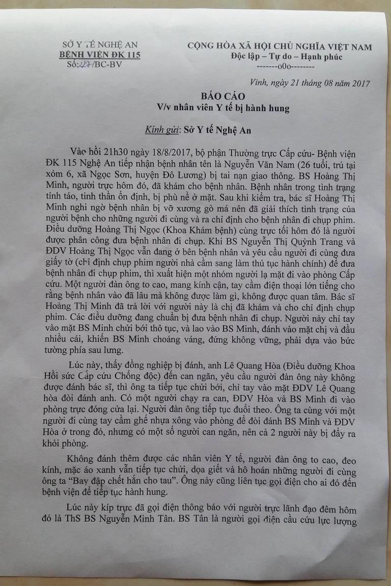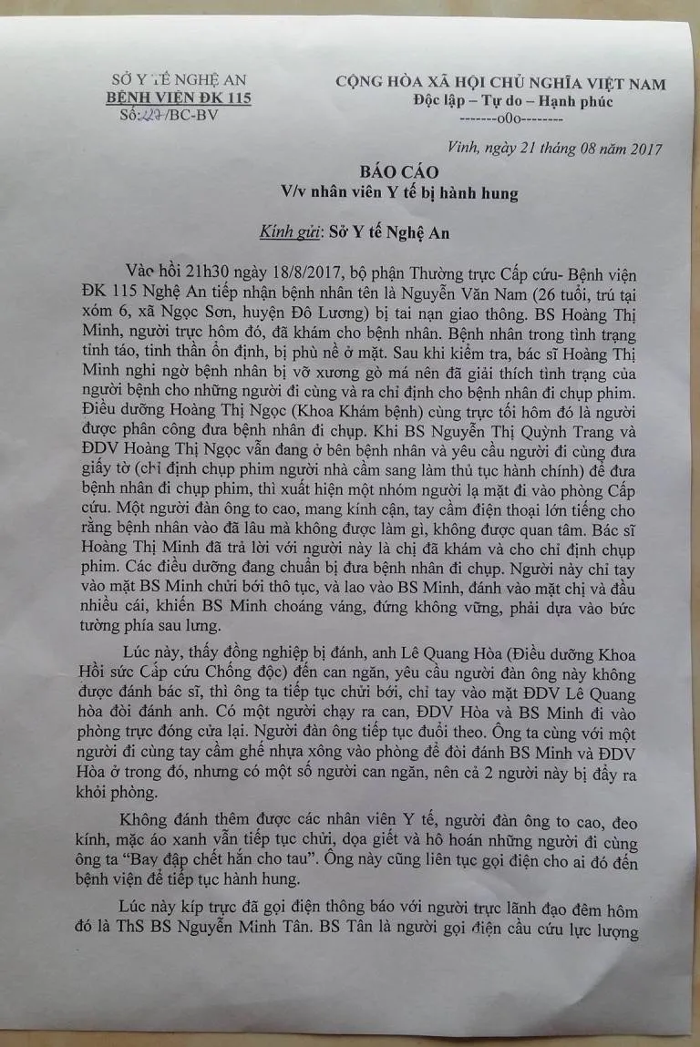 Báo cáo sự việc của BV đa khoa 115 Nghệ An.