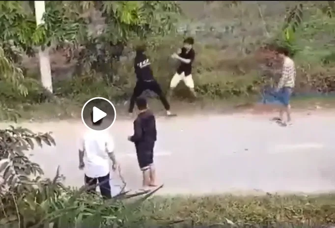 Clip cho thấy hai em trong độ tuổi THCS cự cãi nhau. Sau đó em mặc quần trắng cầm mũ bảo hiểm đánh em đội nón. Tiếp theo đó em đội nón rút dao dí em mặc quần trắng.