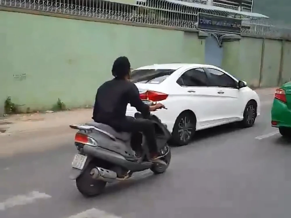 Trước đó, trên mạng xã hội xuất hiện một clip dài khoảng 3 phút 13 giây ghi lại hình ảnh một người đàn ông điều khiển xe máy Atilla biển số 52P3… lưu thông trên đường. Người này tay cầm con dao dài chém vỡ nhiều kính ô tô đang lưu thông cùng chiều.