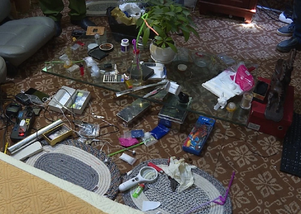 Tại thời điểm khám xét, lực lượng chức năng thu giữ gần 1.000 viên ma túy tổng hợp và trên 100 túi nylon các loại bên trong có chứa các dạng cục tinh thể màu trắng nghi là ma túy đá cùng nhiều dao dạng kiếm, ô tô, điện thoại di động…