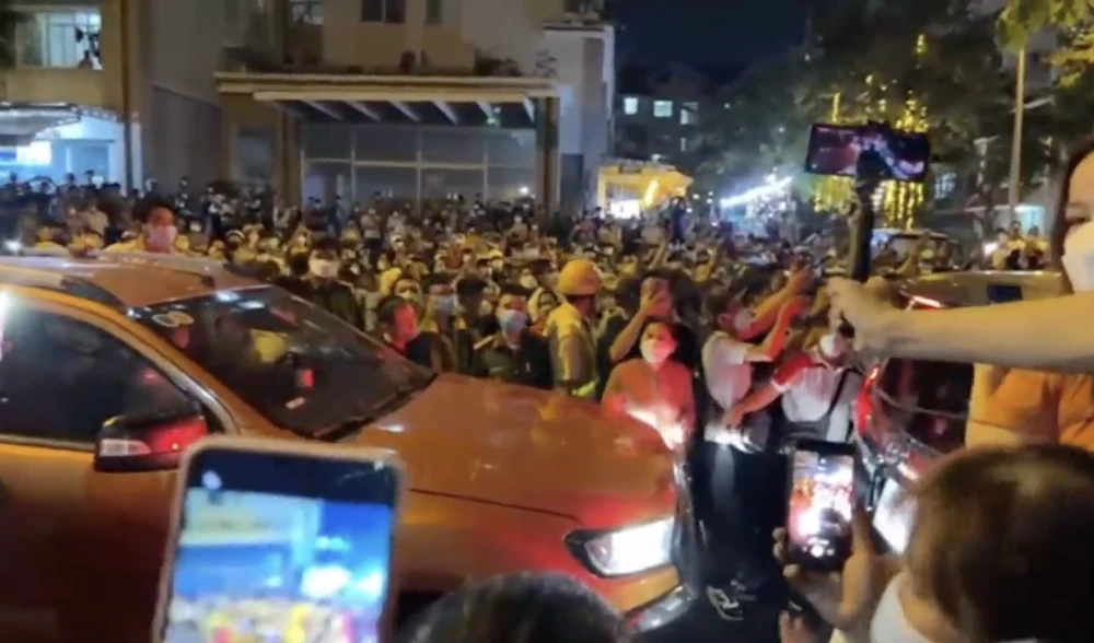 Đến đêm thì bà Phương Hằng xuất hiện và rất đông người vây quanh livestream lên các mạng xã hội, đồng thời nhiều người cũng lên tiếng gọi tên bà Hằng gây ồn ào cả khu phố.