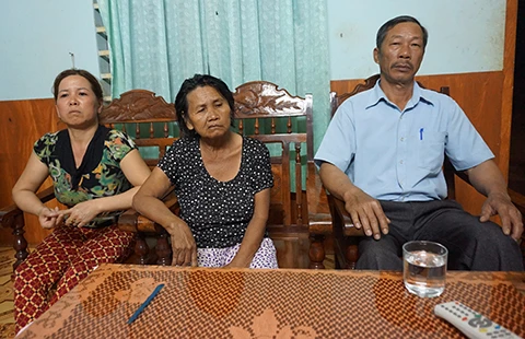 Chị Võ Thị Kim Quê (bìa trái, vợ nạn nhân Nguyễn Hữu Thâu) yêu cầu xử bị cáo đúng tội danh. Ảnh: N.NGA