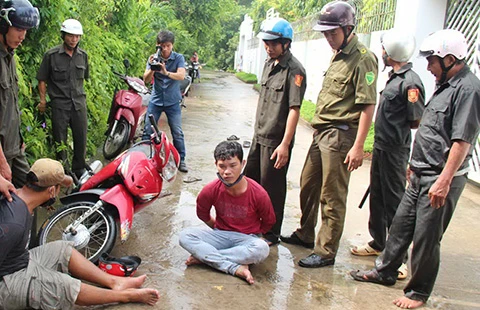 Một buổi diễn tập của công an xã phối hợp với các lực lượng truy bắt kẻ trộm. Ảnh: Yến Anh