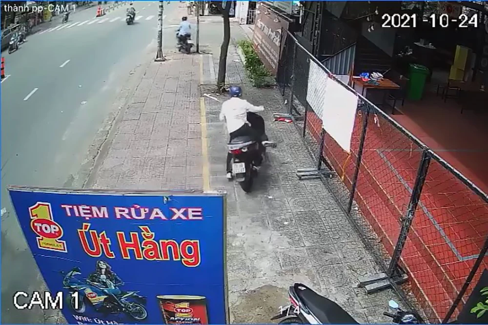 Lúc này, ông U. là chủ tiệm rửa xe phát hiện nên chạy ra hô hoán, một người đàn ông cũng chạy ra lấy xe máy đuổi theo nhưng không kịp.