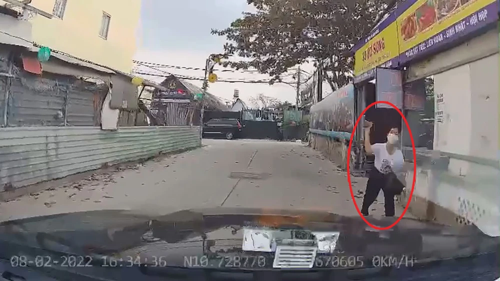 Theo hình ảnh từ clip thì sự việc xảy ra vào khoảng 16 giờ 34 phút ngày 8-2. Chiếc xe đang lưu thông với tốc độ chậm, phía trước là một người phụ nữ đeo khẩu trang, mặc áo màu trắng, quần đen tay đeo túi xách.