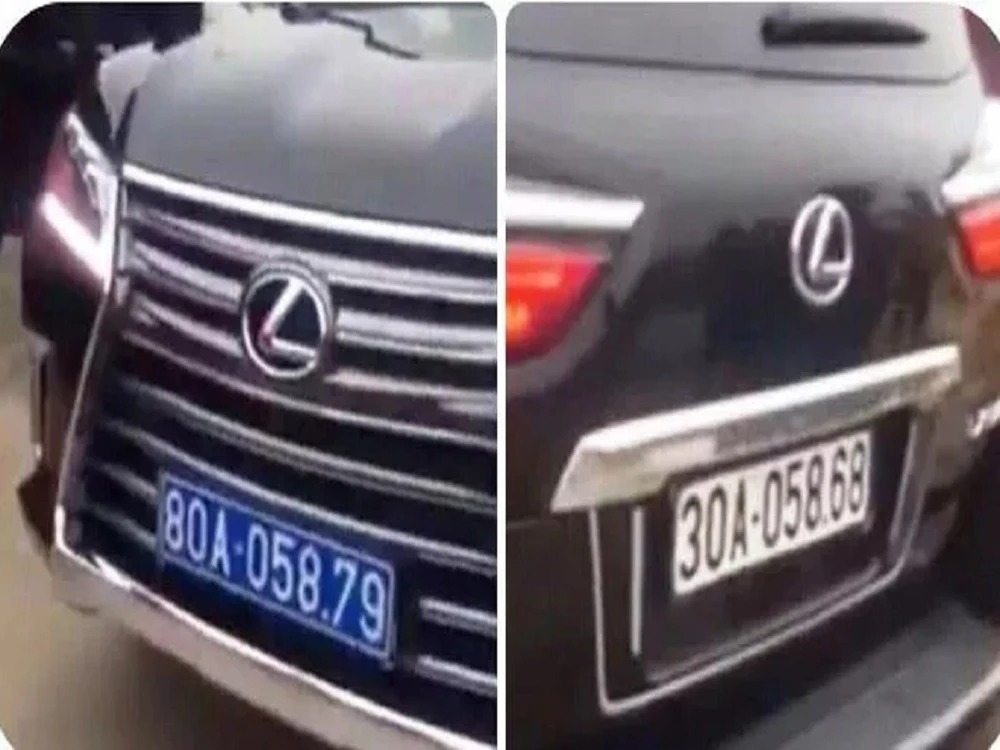 Trước đó, mạng xã hội Facebook chia sẻ đoạn clip ghi lại hình ảnh chiếc xe hạng sang Lexus LX570 phía đuôi xe mang biển kiểm soát màu trắng 30A-058.68, còn phía trước mang biển kiểm soát xanh 80A-058.79.
